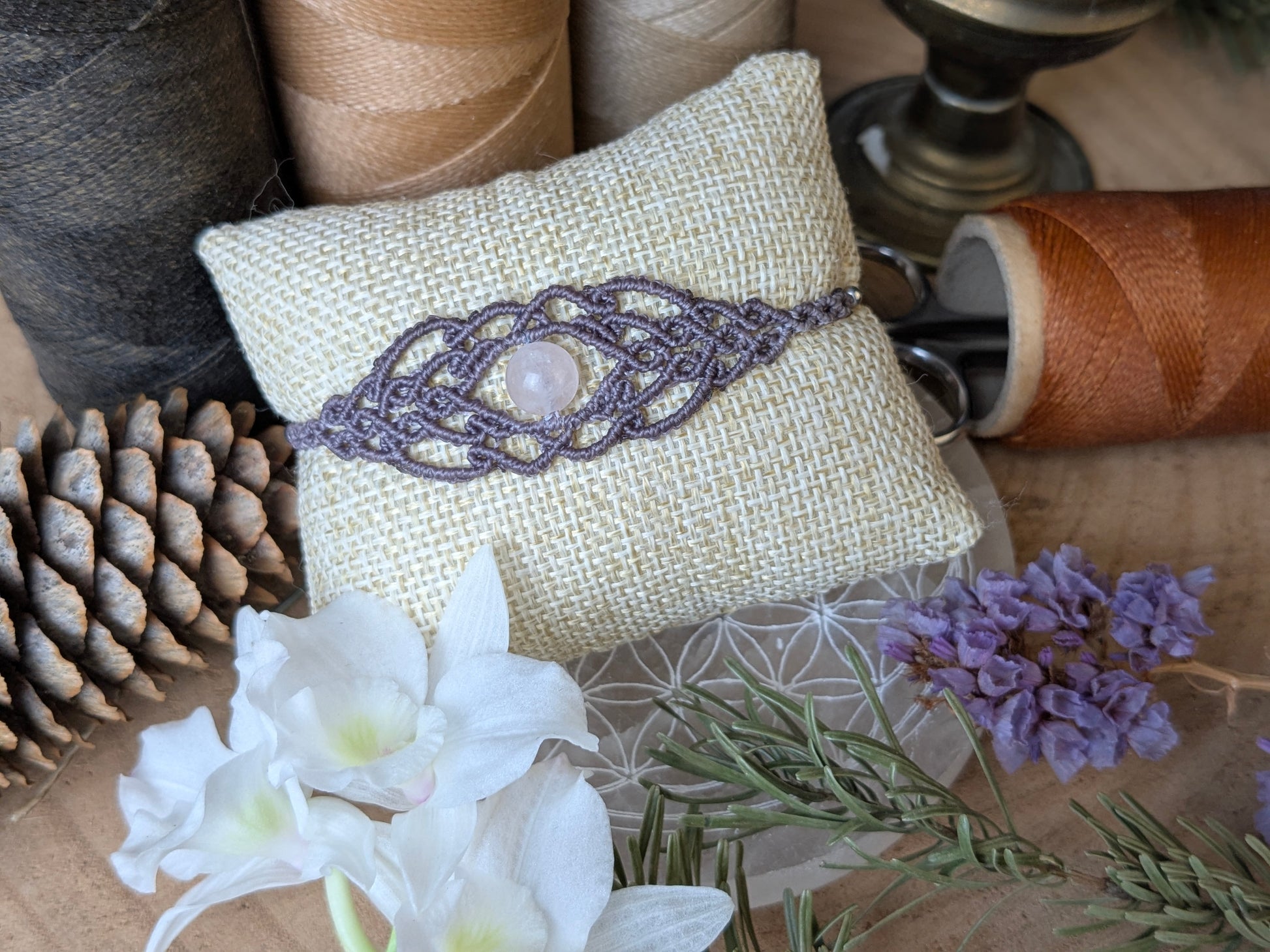 Tissé autour d'une perle en pierre naturelle de 8 mm, et quelques perles en acier inoxydable.