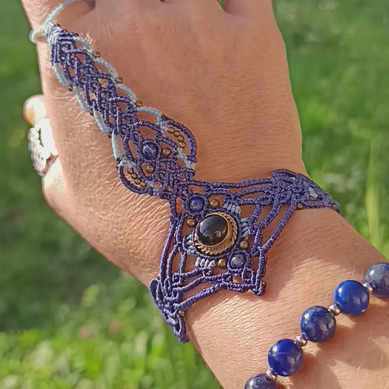 Bijou de main - Onyx et lapis lazuli- bleu