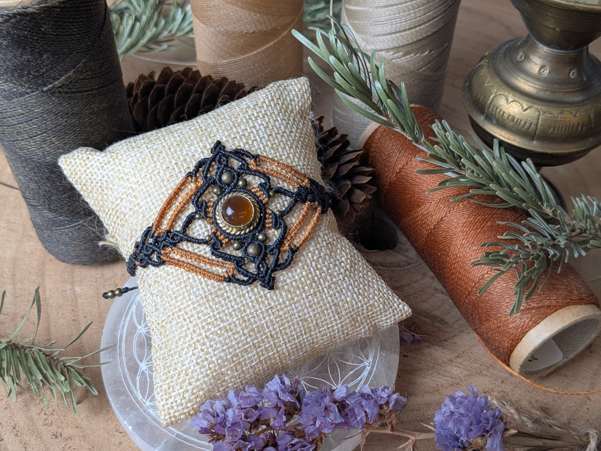 Le mélange de l'aspect bohème par le tissage et de l'élégance naturelles des pierres crée une esthétique captivante, parfaite pour ajouter une touche de style à n'importe quelle tenue.