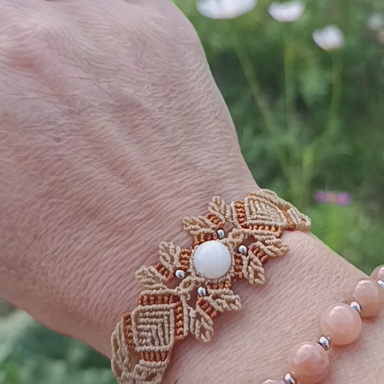 Ce bracelet, tissé sur le thème de ma saison favorite, est réalisé autour d'une perle pierre de lune 8mm,