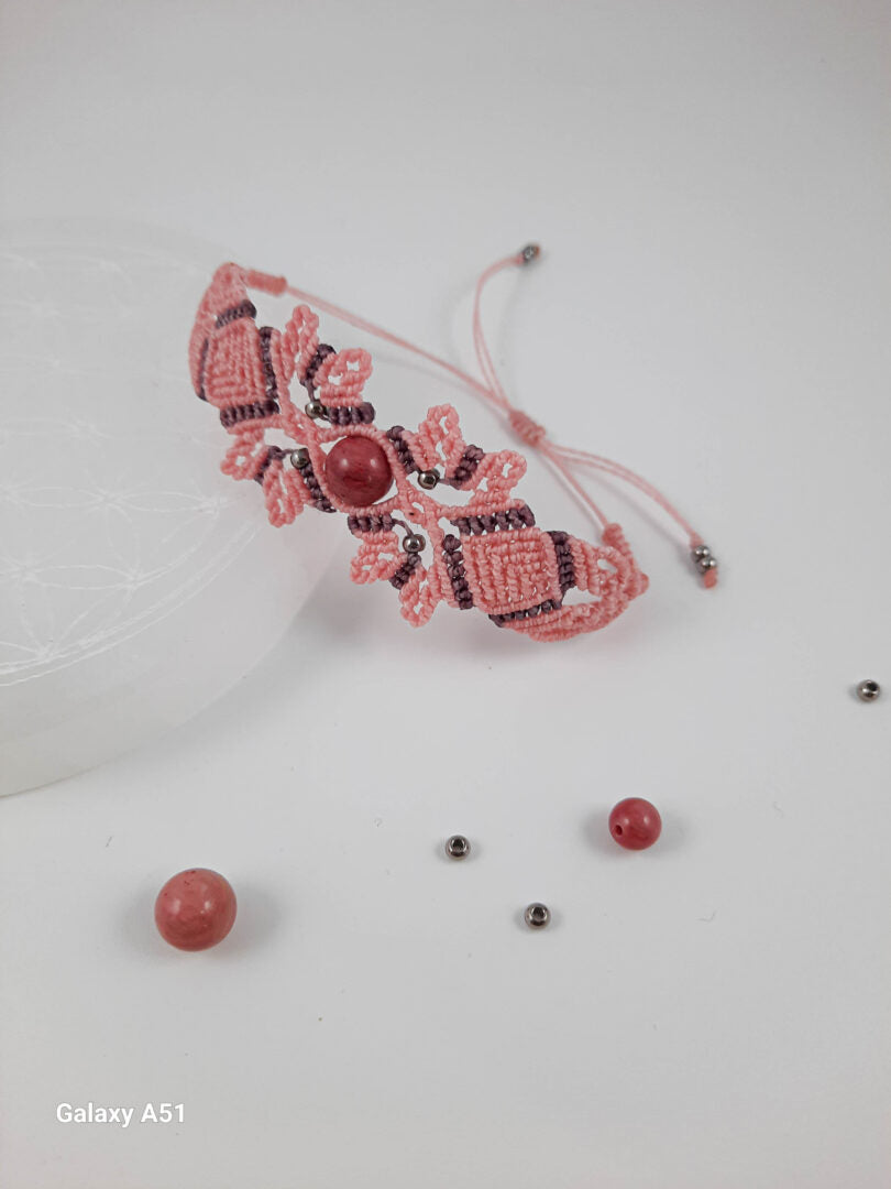 Ce bracelet, tissé sur le thème de ma saison favorite, est réalisé autour d'une perle rhodonite 8mm