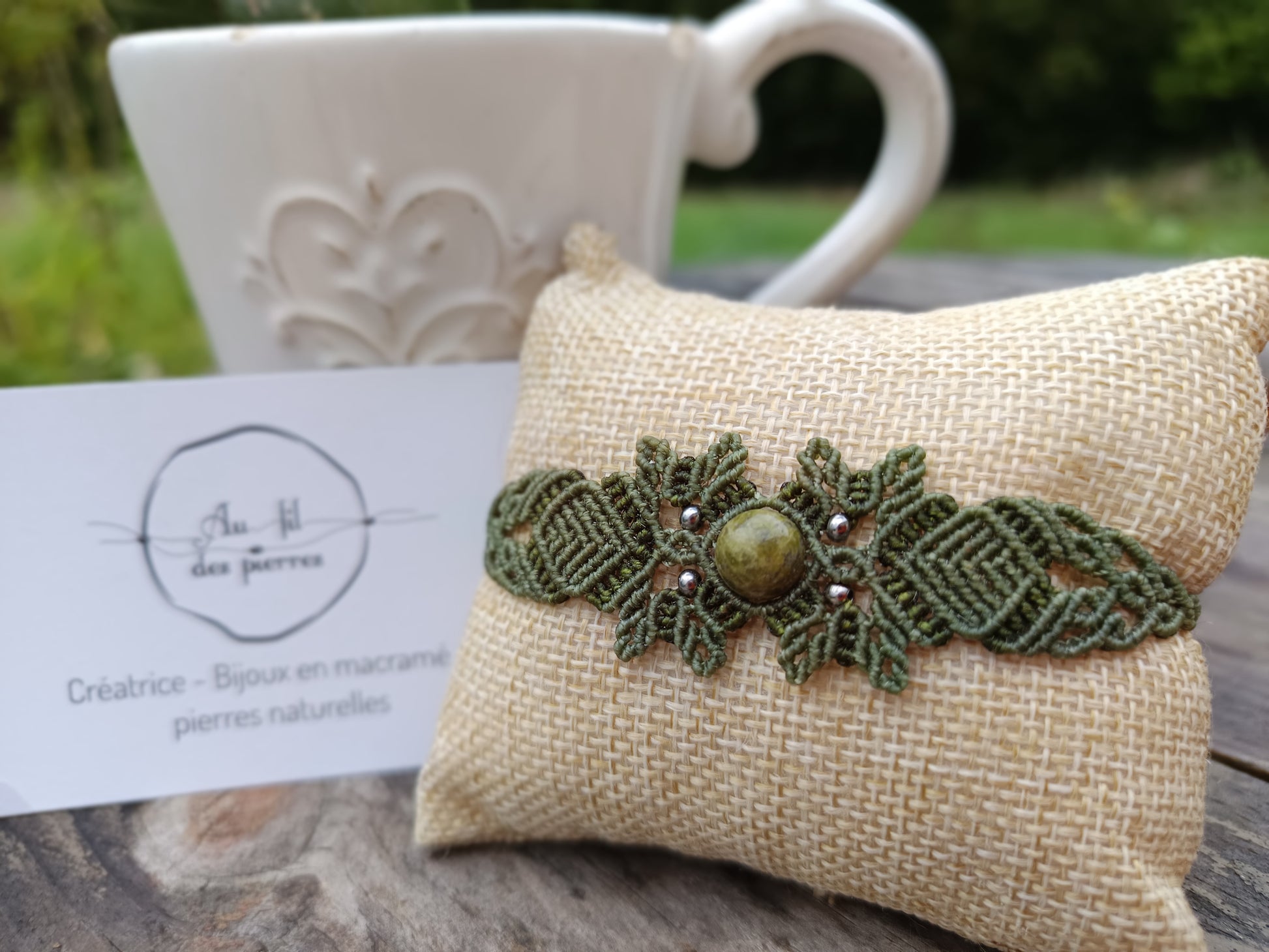 Ce bracelet, tissé sur le thème de ma saison favorite, est réalisé autour d'une perle d'unakite 8mm.