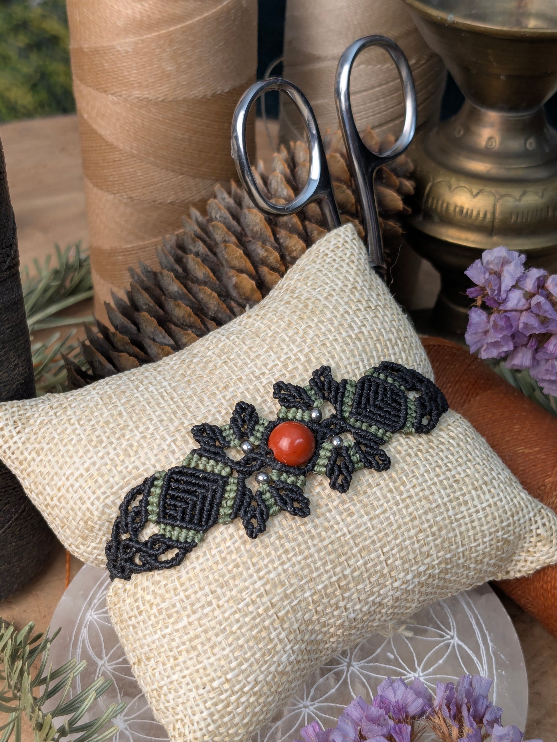 Ce bracelet, tissé sur le thème de ma saison favorite, est réalisé autour d'une perle de jaspse rouge 8mm.