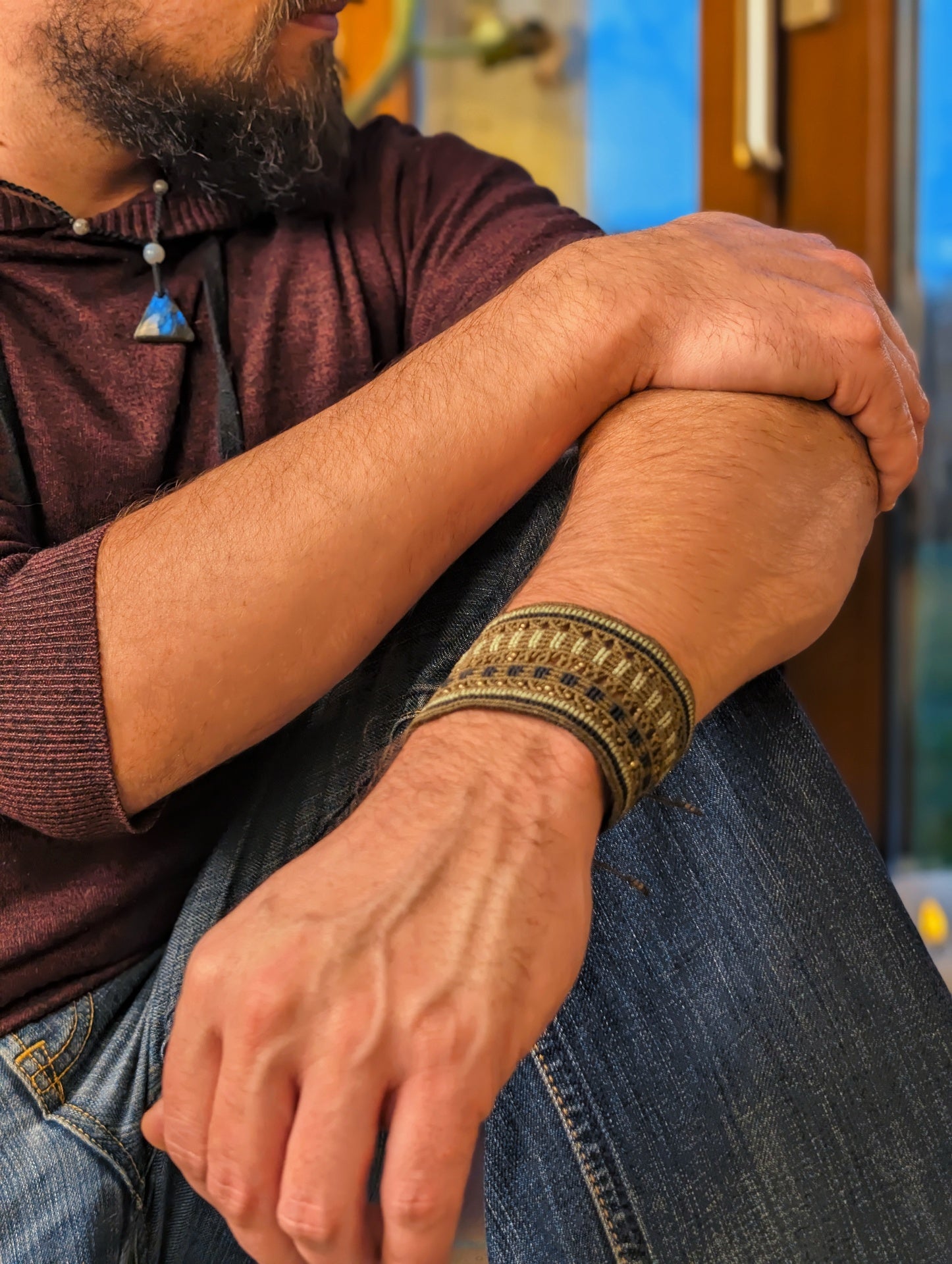 Bracelet manchette réglable à l'arrière via deux nœuds coulissants afin de s'adapter à tout les poignets.