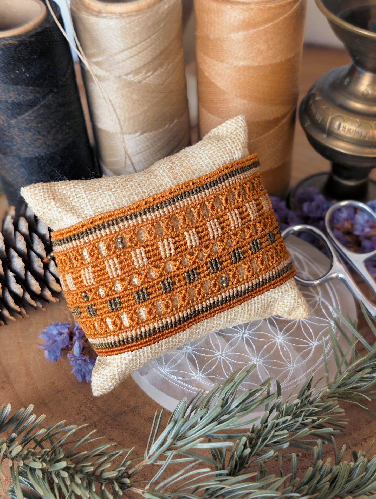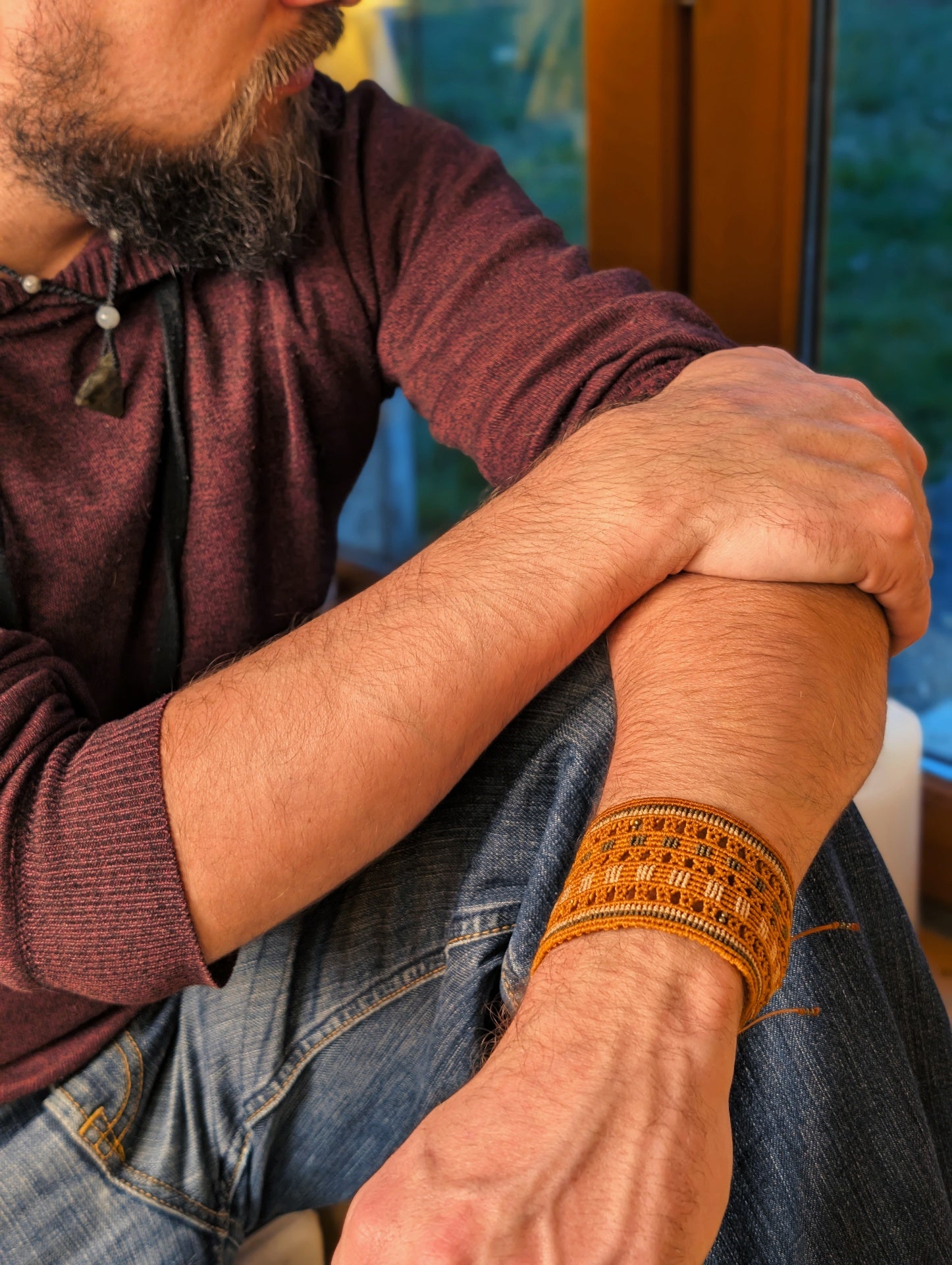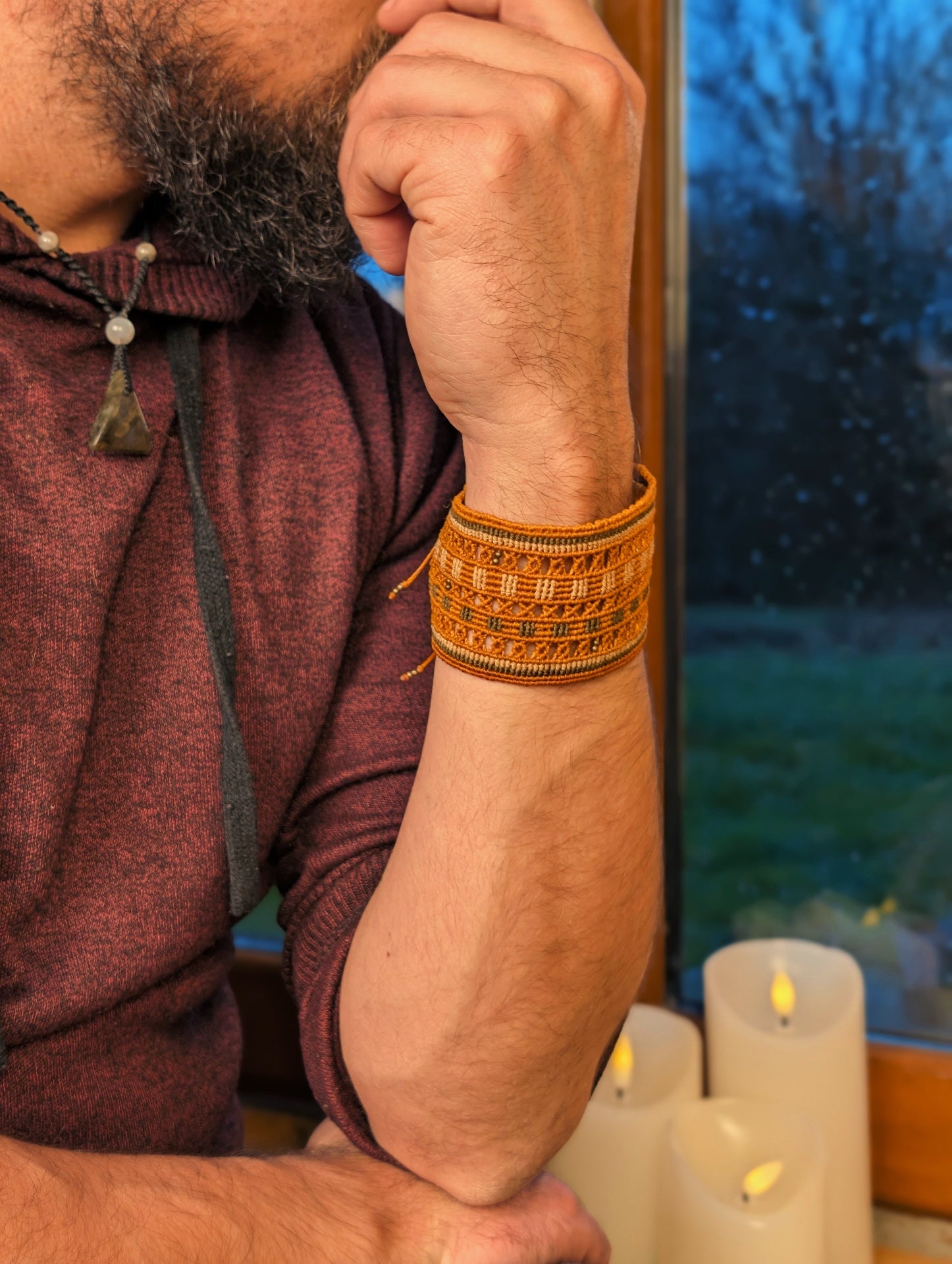 Bracelet manchette réglable à l'arrière via deux nœuds coulissants afin de s'adapter à tout les poignets.